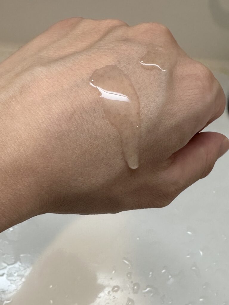 とろみがあり、手に乗せてもとろっと甲に止まってくれるくらい。